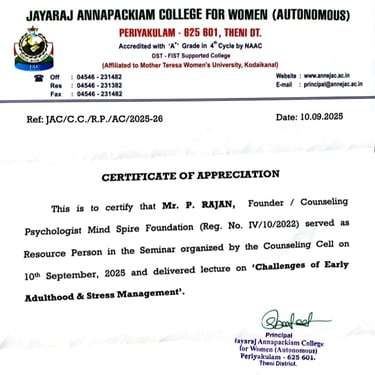 With over a decade of experience in school-based mental health and psychological counseling, I have been conducting seminars, webinars, workshops and training sessions for educators across TamilNadu and beyond.
